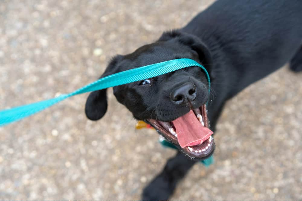 Dancy Leash: Once puppy sees his leash as a tug toy, it can be a difficult habit to break. It flips and flitters around his face while he is on a walk, and sometimes he just canât control himself. Letâs teach puppy that the leash can move around his head and he can still remain calm and keep his teeth to himself. Dancey Leash is the distraction shown in the video. Dancey Leash starts out best just holding the handle of the leash higher than the puppyâs head, with a j-loop below his chin, so that he sees it in different orientations around his head. Once he is successful with that it can sway, swing, and wiggle gently.